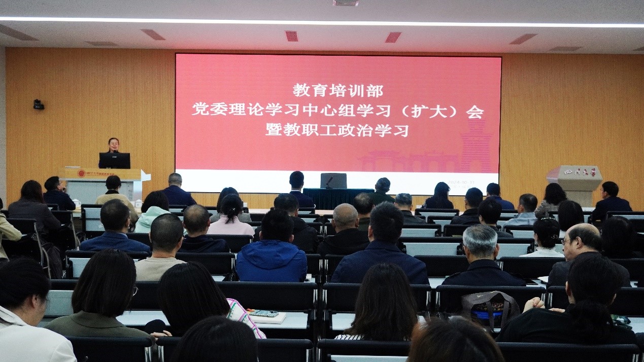 为深入学习贯彻党的二十届三中全会和全国教育大会精神,用会议精神统一思想认识、凝聚奋进力量,10月31日,教育培训部召开党委理论学习中心组学习(扩大)会暨教职工政治学习会议,邀请学习贯彻党的二十届三中全会精...