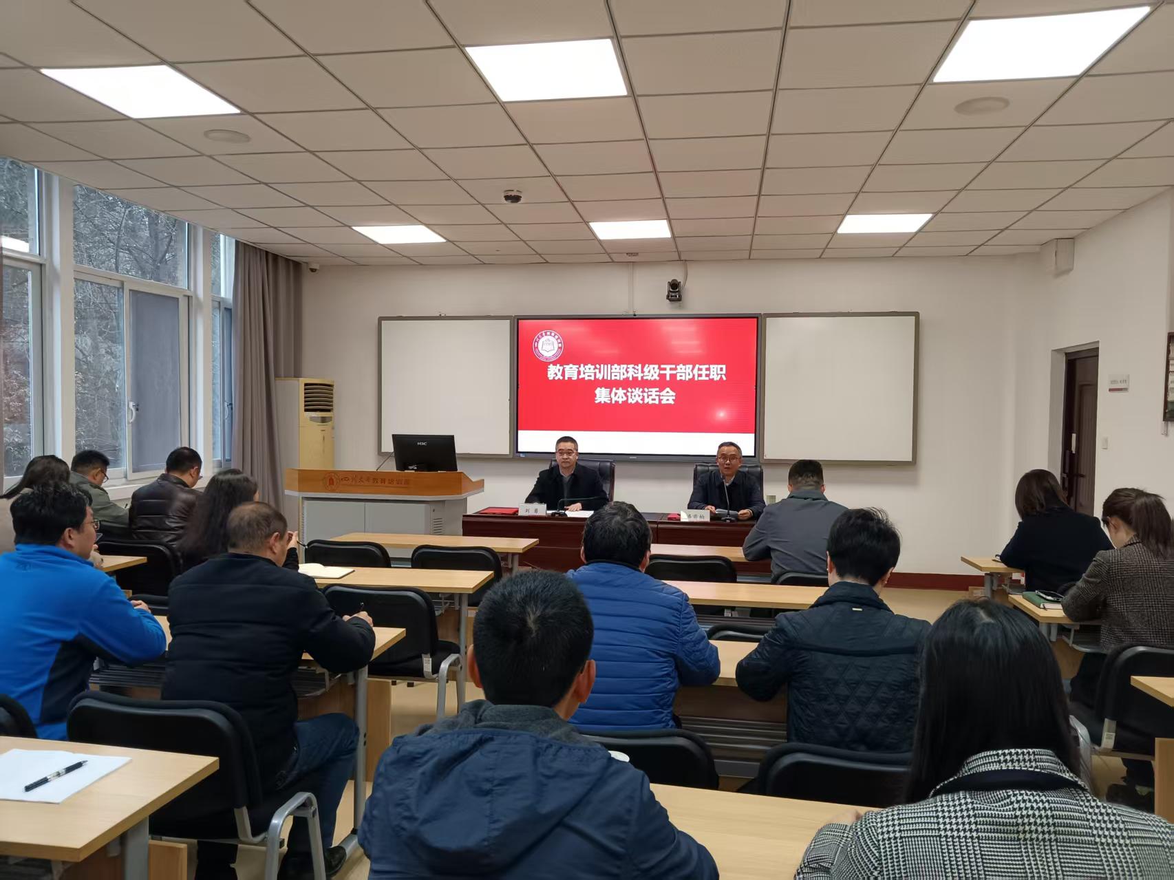 2025年3月14日,122cc太阳集成游戏教育培训部召开科级干部任职集体谈话会。部党委书记潘霜柏、党委副书记兼纪委书记刘勇出席,教育培训部全体科级干部参加会议。 潘霜柏书记代表教育培训部党委,对任职干部表...