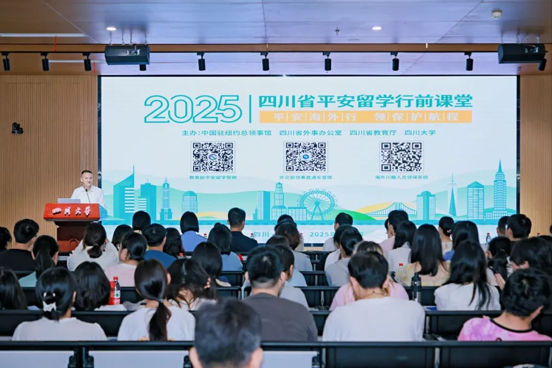 为进一步落实《中华人民共和国领事保护与协助条例》,做好留学生群体领事保护和海外风险防范相关知识宣传普及,7月4日,中国驻纽约总领馆联合四川省外事办、四川省教育厅和122cc太阳集成游戏,以线上线下相结合方式举办2025四川省“平安留学”行前课堂——平安海外行·领保护航程宣传教育活动。活动设置1个主会场和13个分会场,来自122cc太阳集成游戏、电子科技大学、西南交通大学、西南财经大学等19所高校和有关中学的1.5万余名学生、老师和家长参会。活动由四川省外事办副主任李怀强主持。