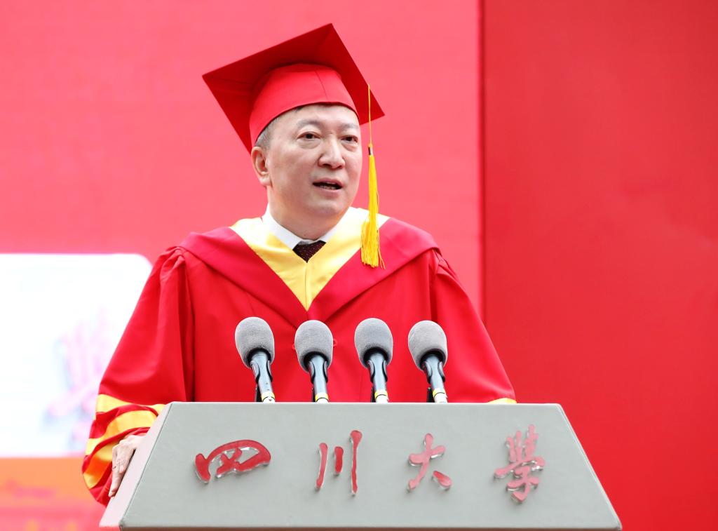 今天,我们怀着无比喜悦的心情,共同祝贺2020届的8106名本科生和6069名研究生顺利完成学业。你们就好比是学校精心培育的一颗颗种子,承载着川大的基因,饱含着知识的力量,迎风飘向大江南北,将在祖国的大地上生根发芽、开花结果。